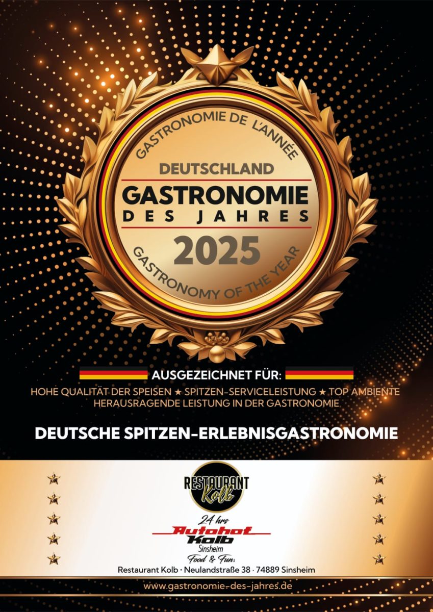 Der Autohof Kolb in Sinsheim wurde gleich doppelt ausgezeichnet: Als „Gastronomie des Jahres“ und von der Michelin-App „Truckfly“ als einer der besten Autohöfe in Europa. Frisch zubereitete Gerichte, erstklassiger Service und ein herzliches Ambiente machen den Autohof zur Top-Adresse für Berufskraftfahrer, Reisende und Gäste aus der Region.